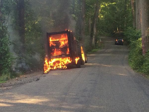 A hay baler was ablaze, according to Joppa-Magnolia Volunteer Fire Company, which captured it on video.