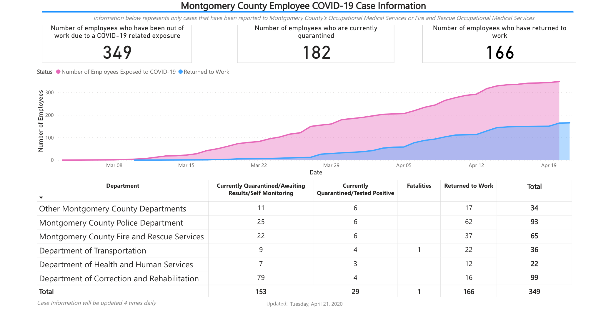 Montgomery County Employee COVID-19 Case Information