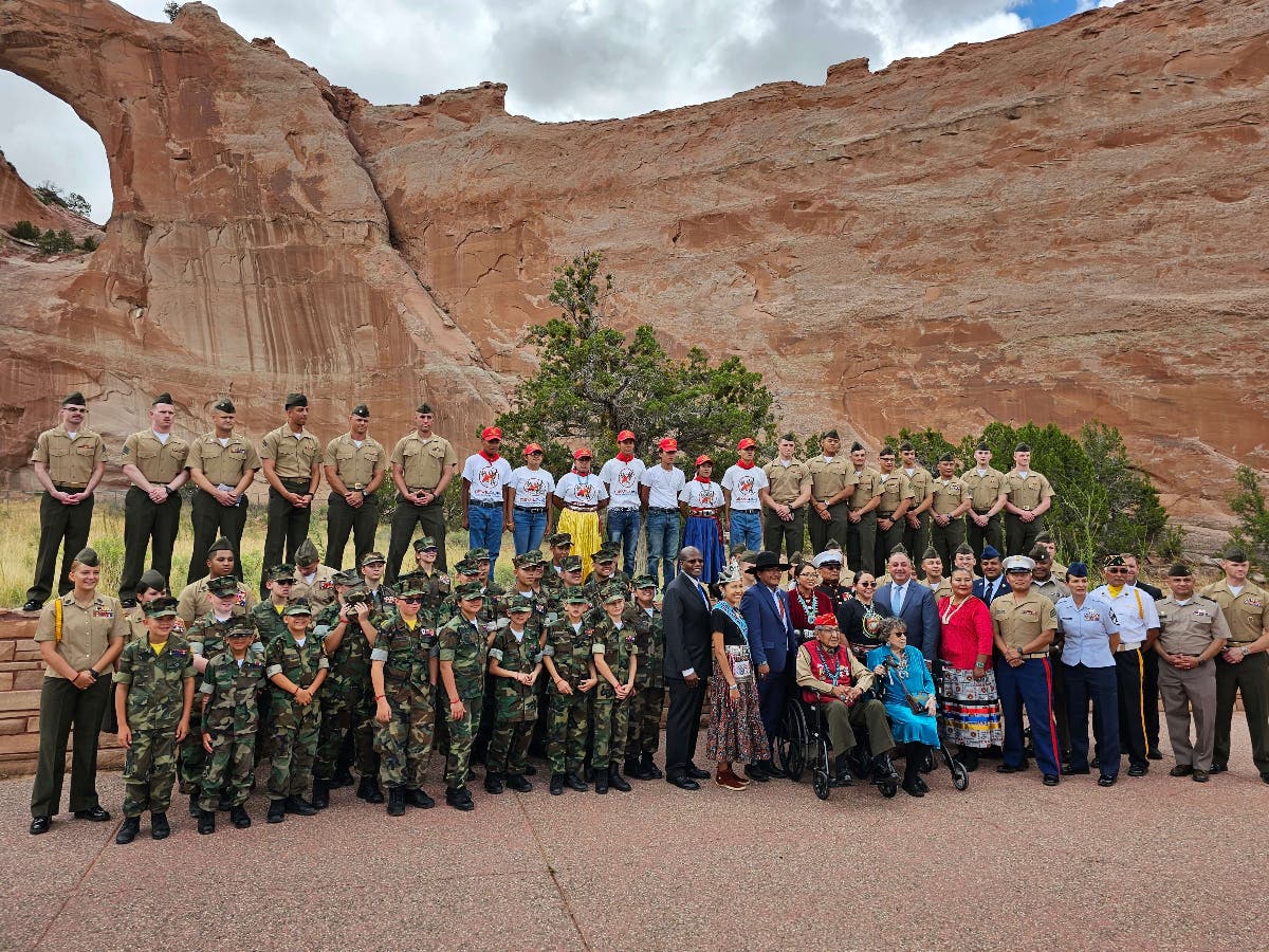 GEICO Military donated $2,500 to the Young Marines National Foundation (YMNF) which helped underwrite a trip to Window Rock, Arizona, for National Navajo Code Talkers Day. August 12- 14 2023, more than 80 youth members of the Young Marines and 50 adults were present for the annual celebration of the WWII veterans.
