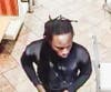 The three suspects are described as black men, about 20 to 25 years old. At the time of the robbery, the first suspect was wearing a blue hat, blue shirt and blue jeans.