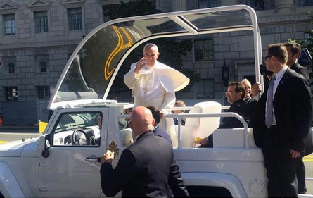 PHOTO of Pope Francis about “Popemobile,” taken Wednesday, courtesy of the White House