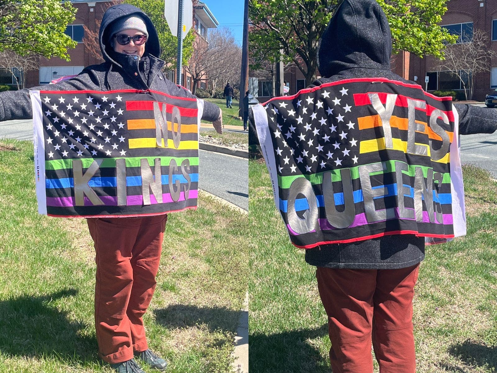 "We're not going to have a monarchy, a dictator or a tyrant. And that's clearly the direction that the Trump regime is moving into. And so, we're here to protest that and say we want a government that obeys and defends, protects the Constitution and the rule of law."