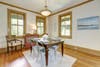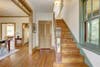 Main level includes mudroom, half bath, living room, formal dining and updated eat-in kitchen. With Marinace Granite countertops, slate tiled flooring, custom wood cabinetry, soapstone farm apron sink, stainless steel appliances, and eat-in area, the kitchen adds a modern touch to the charming historic details.