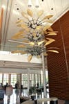 Currently, there are two pieces of art at city hall, which the city commissioned to be created for the new building. Outside in the front of city hall is the 15 foot-tall “Bowie Portal Sundial,” commissioned at a cost of about $90,000. Hanging inside city hall is a large kinetic sculpture. The “Triple Crown” cost about $80,000 to commission.