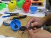 The colorful plastic eggs and components were donated by the International Association of Bomb Technicians and Investigators.