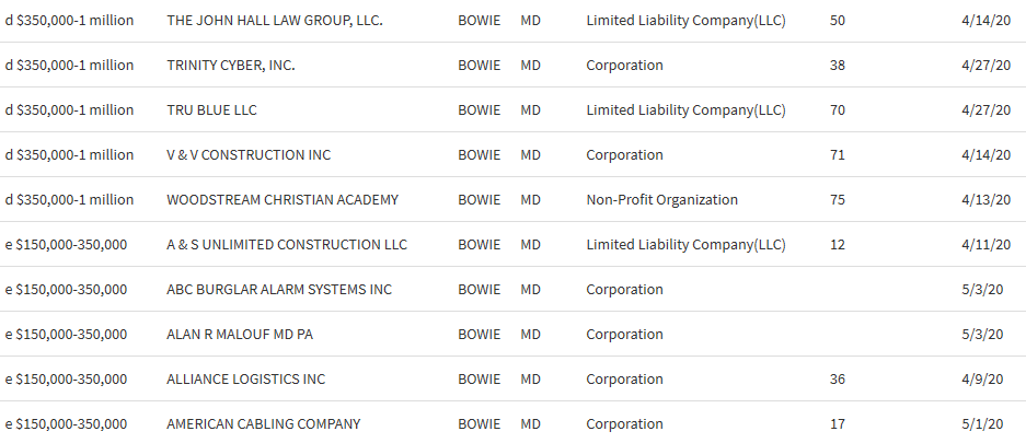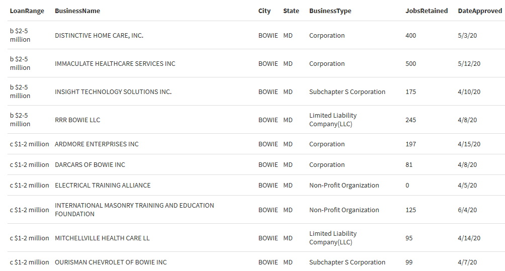 Coronavirus Paycheck Protection Loans In Bowie: Who Got The Money