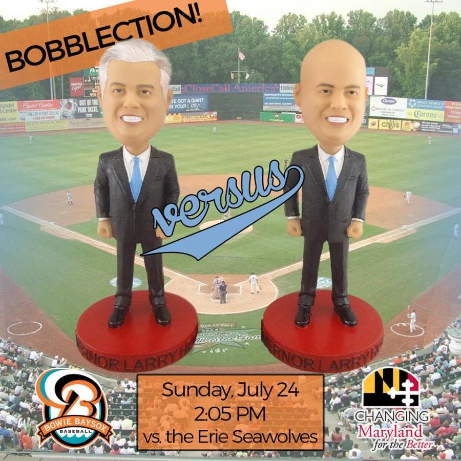 Gov. Larry Hogan's image is on two bobbleheads -- with and without hair -- that Bowie Baysox fans can receive at July 24 game.