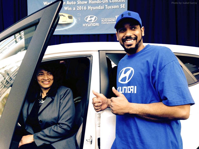 One of five finalists to last until the contest ended at noon on Sunday, William was the third contestant to select a key that would unlock his dream for his mother. After the endless hours of nearly continuous contact with the prize vehicle in the Washington Auto Show’s contest, William gave the key to the brand-new Hyundai Tucson to Margaret.