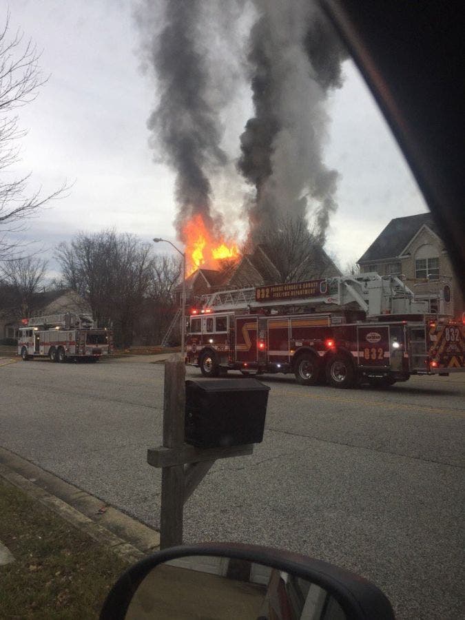Firefighters were called to the 11400 block of Gunpowder Road at 11:35 a.m. Feb. 1 to a house that had caught fire. Prince George's County Fire Department spokesman Mark Brady tweeted that the first started on the exterior and then extended into the attic and roof area.