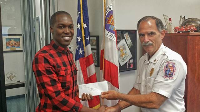 >>Kerne T. Andries (left) with Fire Chief Marc Bashoor (right). Photo courtesy of Prince George’s County Fire/EMS Department