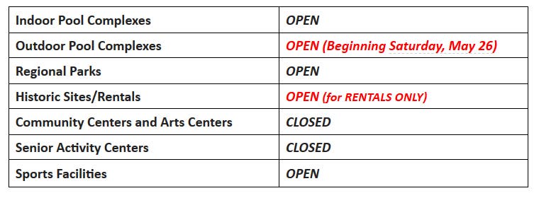Department of Parks and Recreation Memorial Day schedule: