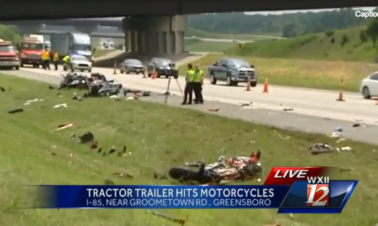 At around 6:30 a.m. Friday, the motorcycles were stopped on the side of the shoulder of the southbound side of Interstate 85 when the tractor trailer left the road and struck all six motorcycles.