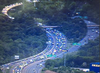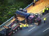 Helicopter traffic pilot Brad Frietas shared photos of the mishap on Twitter, reporting the truck was carrying sand before the crash spilled it on the interstate.