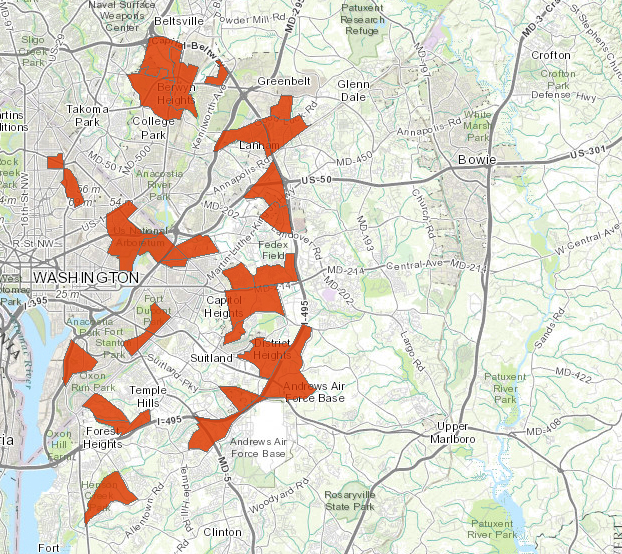 Areas of College Park and Southern Prince George's County included in USDA findings.