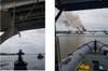 The Marine Unit helped rescue the construction workers as other personnel worked on the bridge to bring the blaze under control, and they had to work quickly with the workers dangling precariously and diesel fuel dripping from above.