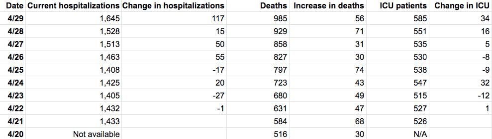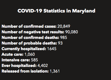 Here is a look at Maryland's coronavirus numbers as of Wednesday, April 29:
