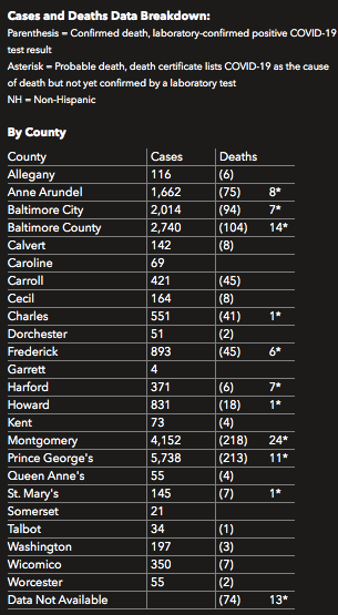 Maryland Coronavirus Cases By Jurisdiction