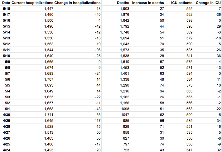 Here are the numbers as of Monday, May 18: