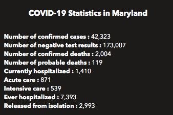 Here is a look at Maryland's coronavirus numbers as of Wednesday, May 20: