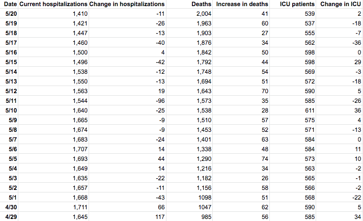 Here are the numbers as of Wednesday, May 20: