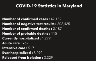 Since the first cases of the virus were confirmed March 5 in Maryland, authorities report 8,092 people have been hospitalized due to the virus and 3,329 Marylanders have been released from isolation.