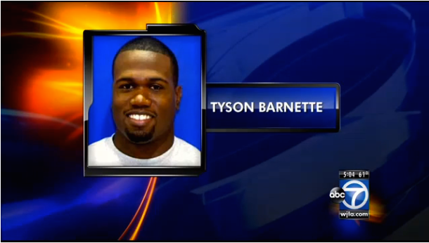 >>Tyson Barnette, 26, of Upper Marlboro was shot multiple times on his mail route in Landover. Photo screenshot from WJLA.