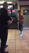 Martinez wrote on YouTube that he first noticed Moycherielli talking to himself, then loudly banging on his table like a drum before the man began punching the table. Restaurant employees had called police at that point, but the suspect took off his shirt, threw chairs to the ground and slammed a wet floor sign to the ground before officers arrived.