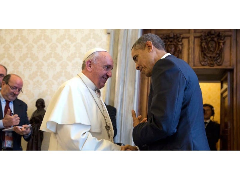 Pope Francis and President Obama at the Vatican last year; White House photo