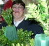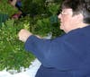 Anita Cavanaugh starts at the top with a strong branch. "It's important to start at the top and work down", she says. "Otherwise you don't get a good shape.