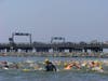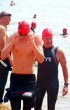 The winner was Frederick Hviid with a time of 1.35.57. (He also swam in the 1996 and 2000 Olympics for Spain. The yellow capped swimmers were the first wave of off Sandy Point and the red were the second wave.