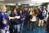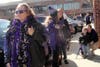 Dozens of fans decked out in purple jerseys, hats, footballs and even leis greeted Baltimore Ravens cheerleaders when they arrived in Arnold for a special pep rally.