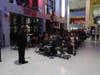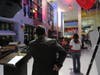 Aside from free pizza and soft drinks, attendees followed poll returns on a jumbo-screen television, played politically themed games and media coverage bingo.