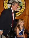 Last year, several of the district winners visited at the start of a council meeting to read parts of their essays. Litter, transportation and unity were hot topics of discussion that had current Mayor concerned for his job: "Thank goodness for age restrictions," .