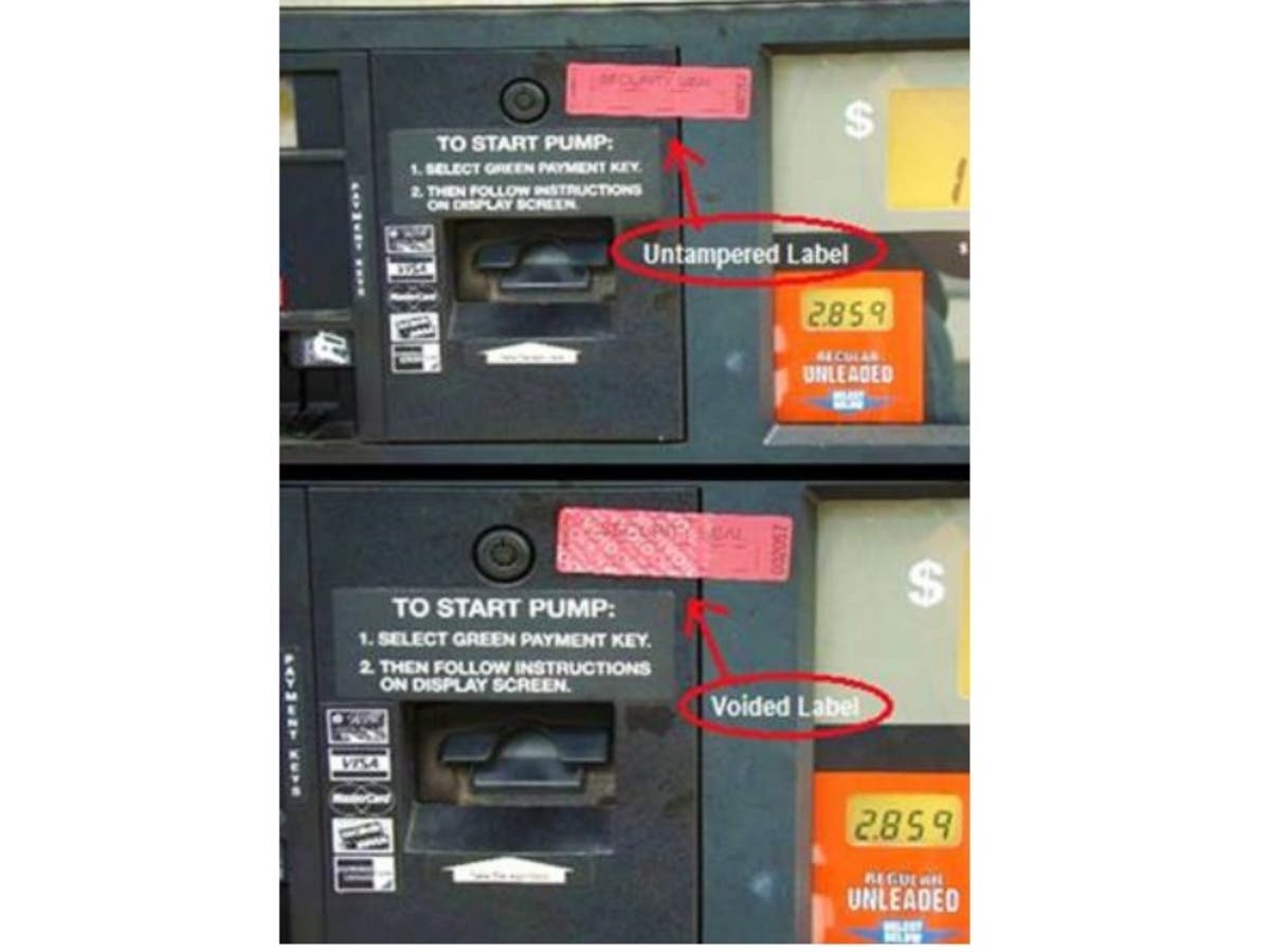 Main photo of security label at gas pump, courtesy of the Federal Trade Commission.
