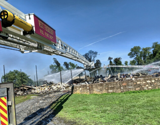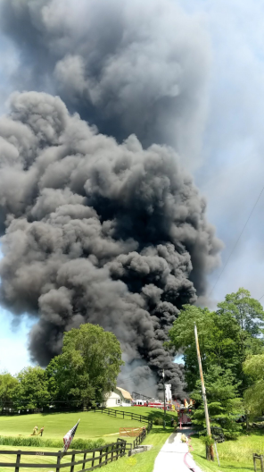 Extra water supply was requested at the scene, where the Lisbon Volunteer Fire Company and the Howard County Department of Fire and Rescue Services worked to put out the blaze, which sent a plume of smoke into the air that was visible for miles. Crews from Carroll and Montgomery counties also assisted. During the firefighting activity, Route 97 was closed in the area.