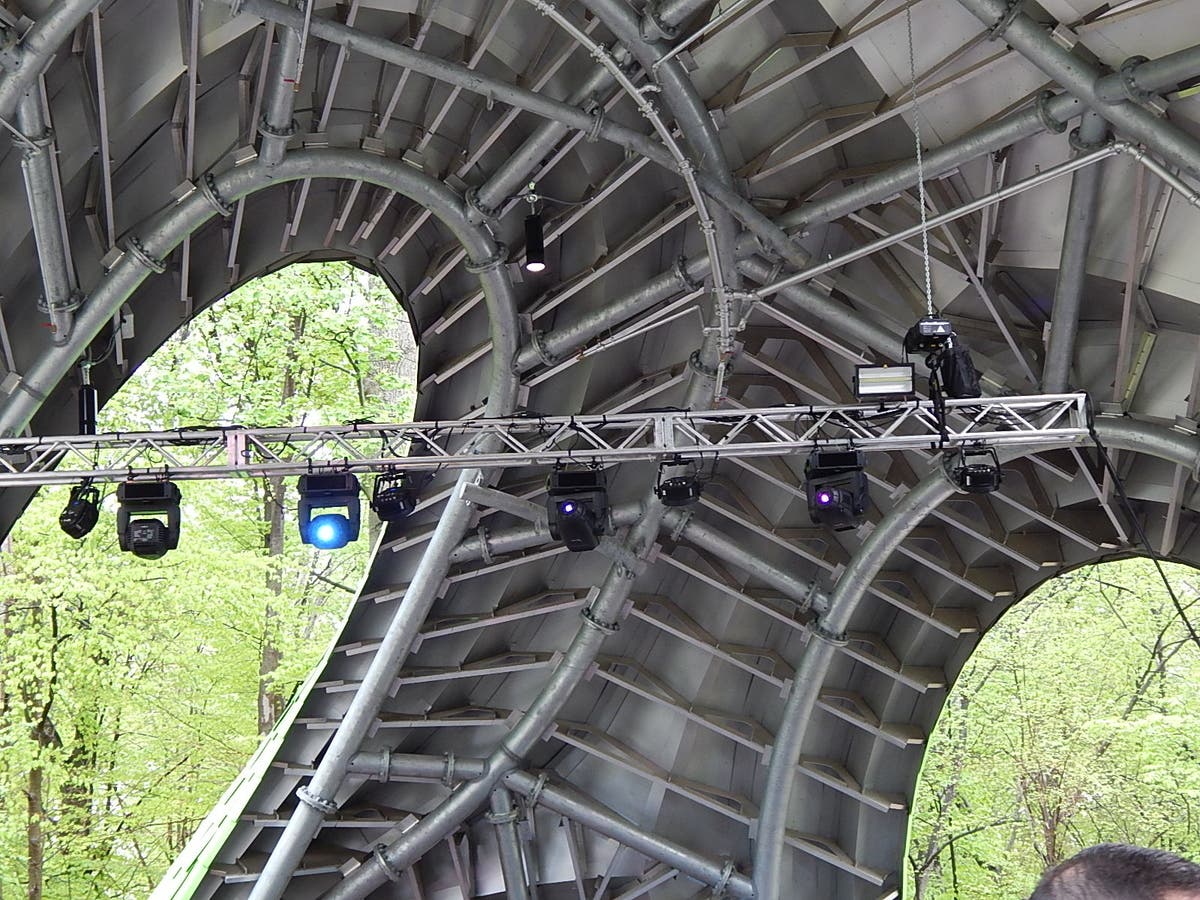 The Chrysalis officially opened over the weekend during a rainy ceremony that still drew a crowd of more than 100 people. Designers and planners who had worked on the Chrysalis experienced the fruits of their labor as musicians performed within its carefully sculpted arches. Amps and lift capacity are built in, according to Michael McCall, founder of the Inner Arbor Trust, which oversaw its development.