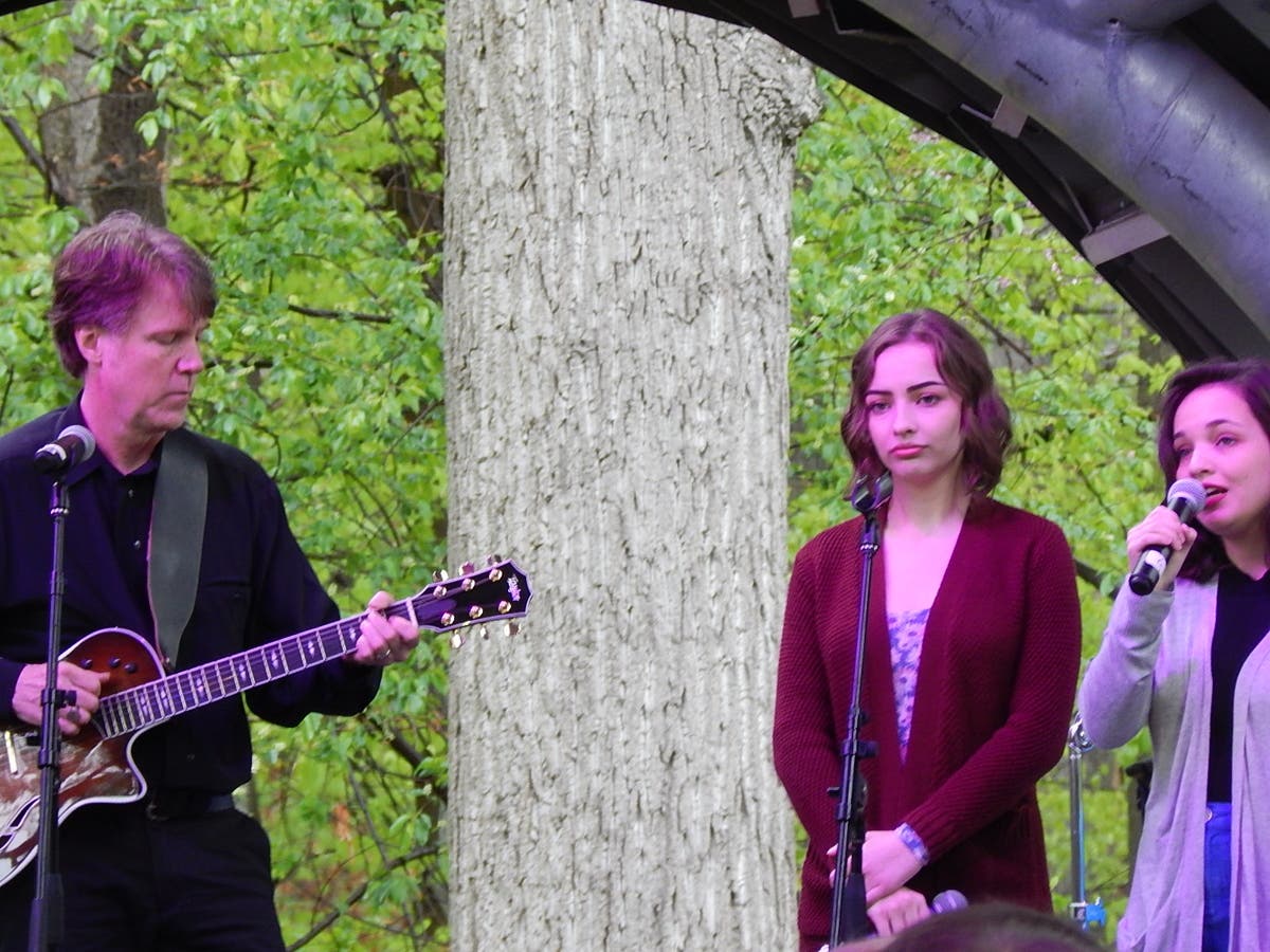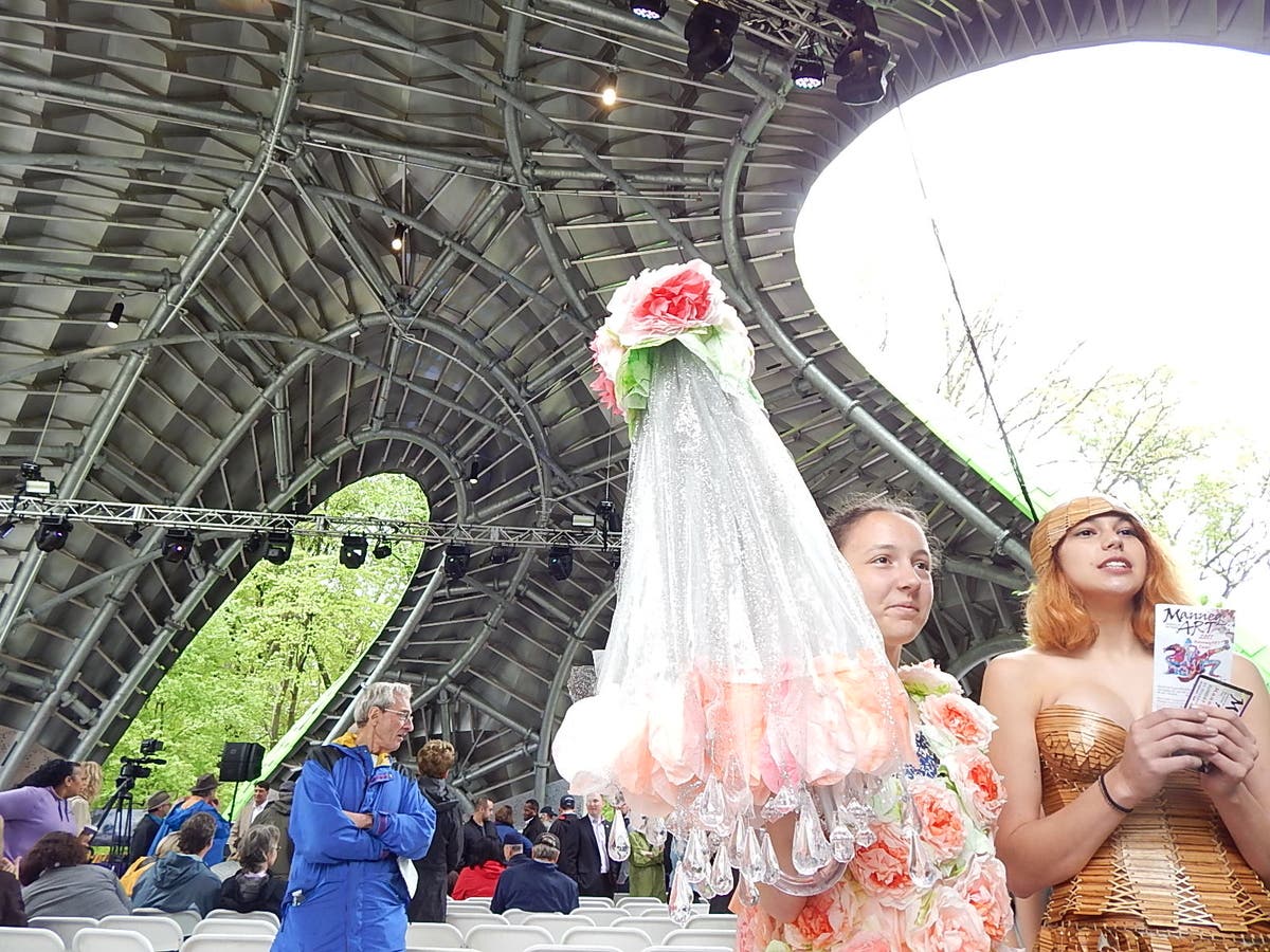 During the dedication of the Chrysalis on Earth Day (Saturday, April 22) two musical acts performed, and living art was on display, worn by models from ManneqART, a Howard County arts group.