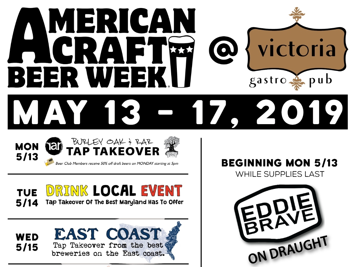 American Craft Beer Week (5/13 - 5/17) is a longstanding annual tradition at Victoria Gastro Pub. Every night, the Pub will feature a new and exciting adventure in American Craft Beer.