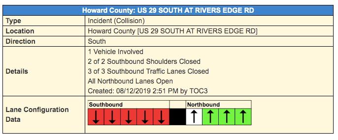One lane had reopened on Route 29 south in the area by 3:55 p.m. on Monday, Aug. 12, police reported.