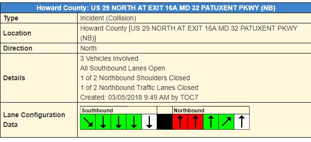 COLUMBIA, MD ā A crash in Howard County briefly shut down US 29 to northbound traffic. The collision occurred in the area of US 29 north at the exit for MD 32 before 10 a.m. on Monday.