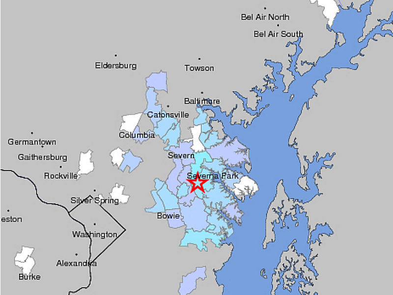 One person in the 21046 zip code reported feeling weak shaking with no damage. Another respondent, this one in the 21044 zip code in Columbia, shared that the earthquake was not felt there.