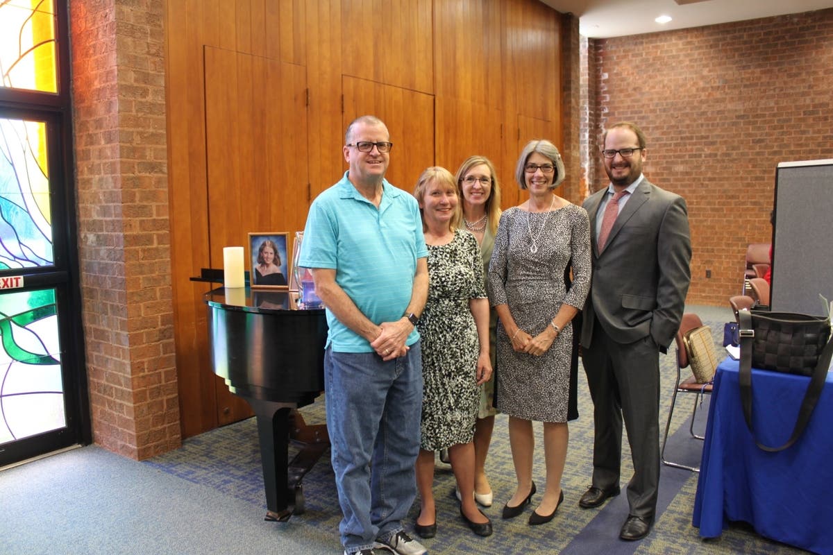 Picture from left are Emily Schindler’s parents, Charles and Jane Schindler; Laurie Harrison, Director of the Chesapeake Life Center; licensed clinical social worker Susan Coale, Clinical Manager of Bereavement Services for Chesapeake Life Center; and Dr. D. Andrew Tompkins, Assistant Professor in the Department of Psychiatry and Behavioral Sciences at Johns Hopkins University School of Medicine.
