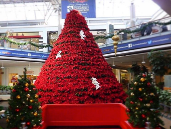 Howard County Chamber of Commerce and Howard Community College sponsored the annual poinsettia tree at The Mall in Columbia. Photo Credit: Howard Community College/Instagram.