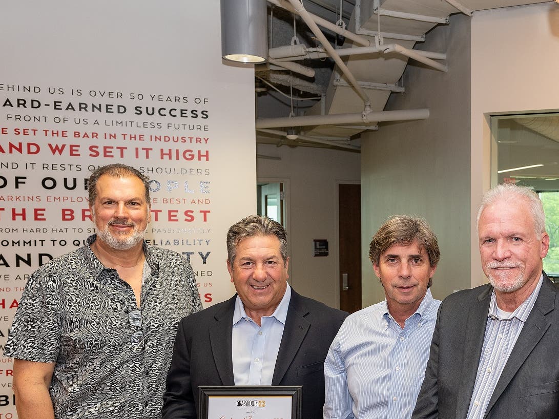 A recent visit to Grassroots Crisis Intervention Center donor Harkins headquarters included the presentation of a Certificate of Appreciation.