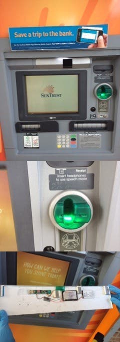 “According to the Federal Bureau of Investigation, card skimming is a crime that involves installing a device, which is often difficult to detect, that records account information when a card is swiped at an ATM. Criminals then use the data to access the victim’s bank account. These devices are sometimes found at ATMs, gas pumps and other point of sale locations.