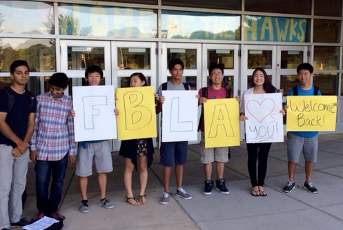 Photo Credit: @RHHSPrincipal. Members of the River Hill Future Business Leaders of America welcome students back.