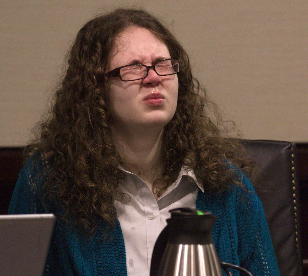 Natalie Keepers reacts during the sentencing phase of her trial in Christiansburg, Va. A jury found Keepers, a former Virginia Tech student, guilty for her role in the death of a 13-year-old girl two years ago. Keepers was charged as an accessory in the 2016 fatal stabbing of Nicole Lovell. (Ethan Candelario/The Roanoke Times via AP, Pool)
