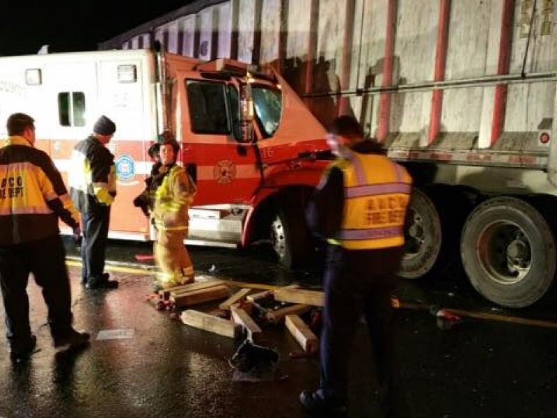 After crashing into the Sonata, the ambulance hit the side of a 2014 Volvo tractor-trailer, according to police.