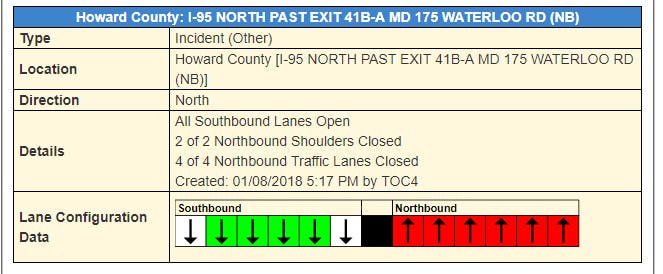 HOWARD COUNTY, MD — Those headed north on Interstate 95 in Howard County should expect delays and may want to seek an alternate route. I-95 north was briefly closed past the exit for MD 175 due to a vehicle fire.
