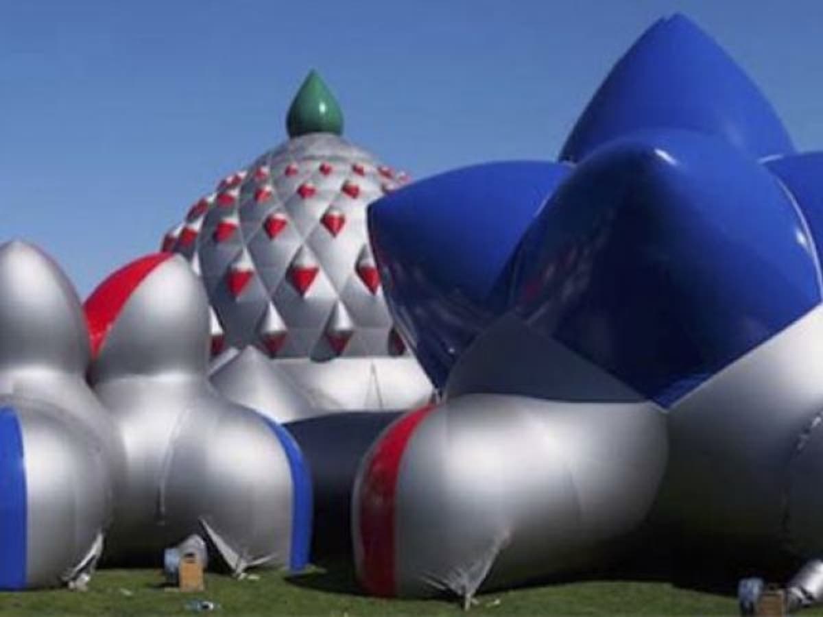 Called "Architects of Air: Katena Luminarium," the piece is a series of inflatable sculptures that are illuminated in different colors through a maze of tunnels and domes.